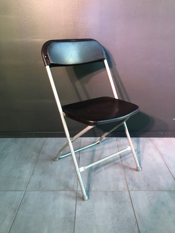 Smidig och lätt klappstol i svart med grå benställning.
